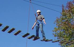 Now this picture is not us, it’s just for dramatic affect. Thank goodness we didn’t have to wear helmets or go above the tree tops, but we were single file like this, and we were walking a tightrope and trying to survive. It was a good picture of widowhood, don’t you agree?